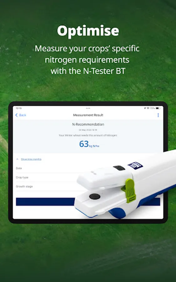 Optimise your nitrogen applications and find out crops’ specific nitrogen requirements with the N-Tester BT. Seamlessly integrated with the Atfarm app, simply take your crops’ measurements with the N-Tester and Atfarm will provide you with nitrogen recommendations tailored to your crops.