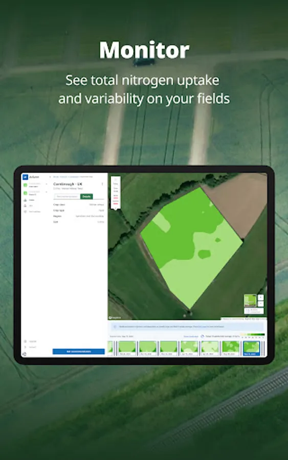 Discover the areas of high potential and crop variability on your fields in one click. Detect problems early and efficiently monitor nitrogen applications, all via detailed satellite imagery. Optimised maps allow you to easily monitor crop development with never- before-seen precision.