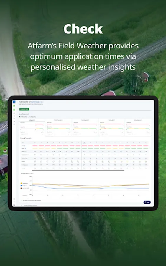 Always know the optimum times for precise application with the Atfarm Field weather function. Intuitive, colour-coded timetables display optimum spraying and spreading windows over the next 5 days. View localised weather information such as wind, precipitation, humidity and air and soil temperature. Easily use these personalised weather insights to know when to apply both liquid and solid fertilisers of different quality grades.