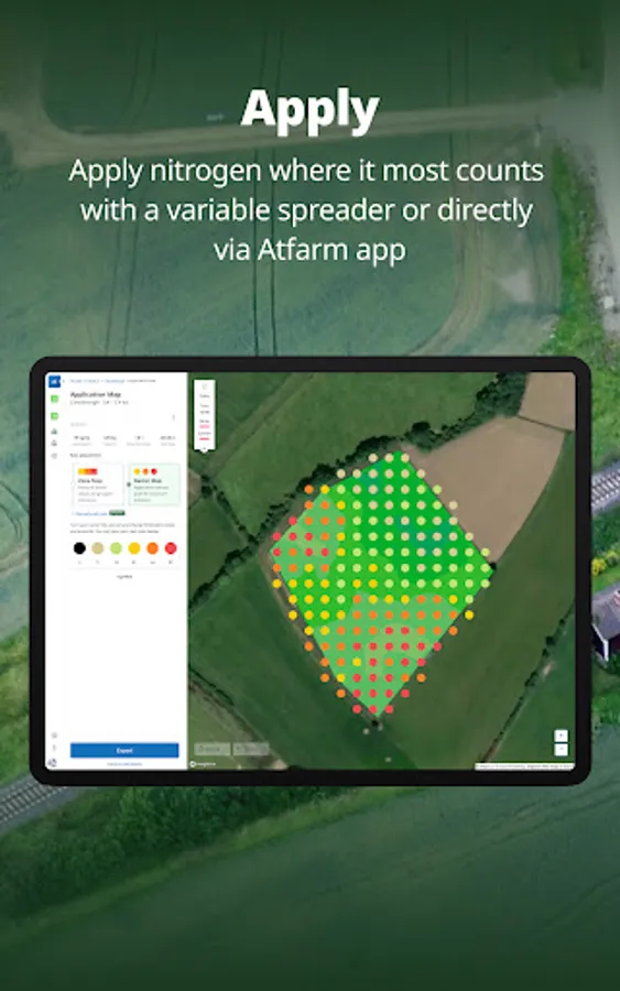 Create a VRA map that displays which crops need the most nitrogen. No terminal? Use the Atfarm app and smartphone GPS to manually adjust your spreading.