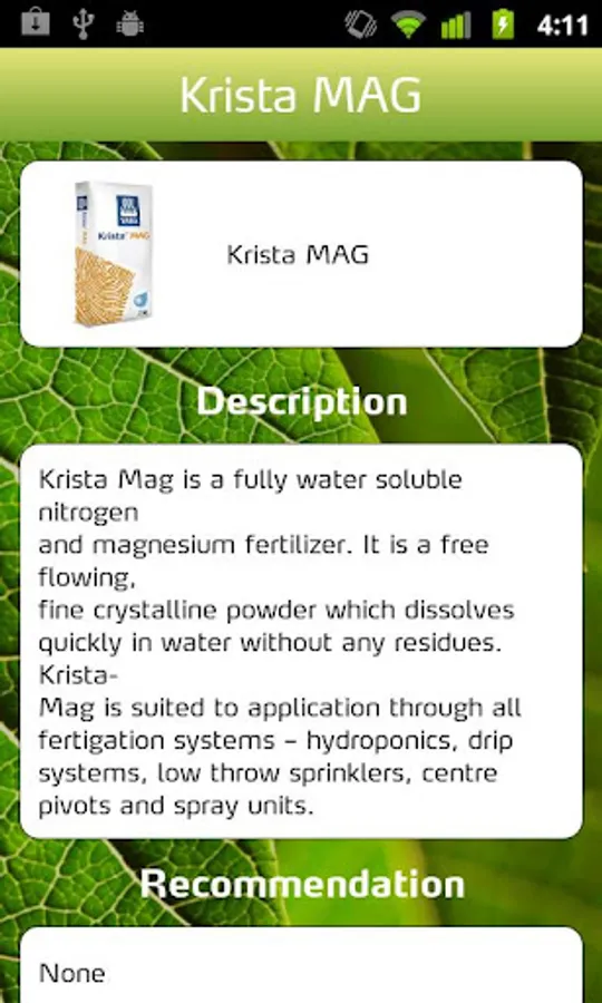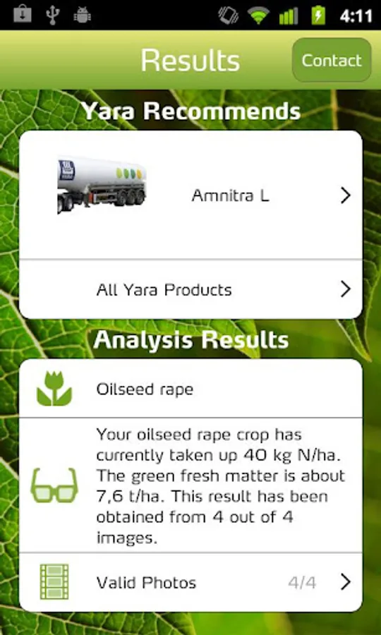 Besides showing the user how much nitrogen to apply to obtain optimal yield and crop quality, ImageIT provides quality assured fertilizer recommendations with Yara preferred product and contact information of the closest Yara office.