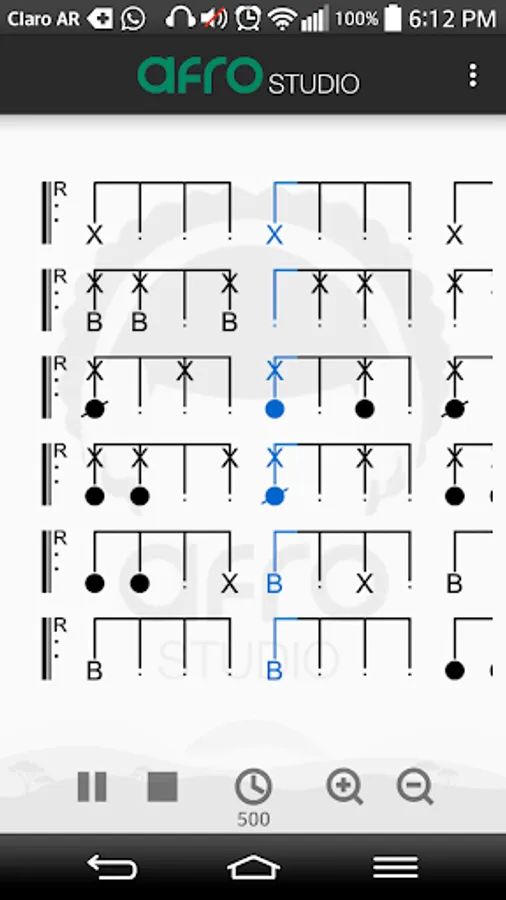 Finally, the experienced musician can take advantage of Afro Studio to compose and get the feeling of complex musical structures and phrases to later play in the real ensemble. Also, since African drum rhythms are mainly transmitted by word of mouth, keeping them safe and stored in Afro Studio can help to mantain the tradition. I have been using this tool this way with great benefit and now I intend to share this with the rest of the African music community. Hope you can enjoy it too :)