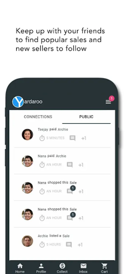 Yardaroo is all about community building. Buyers and sellers can stay in touch with each other by connecting with each other through the app. People can follow each other and engage with each other’s activity to see which sales are popular, organize outings and share pictures of sales. Our internal messaging system offers a convenient way to communicate and ask questions about sales.