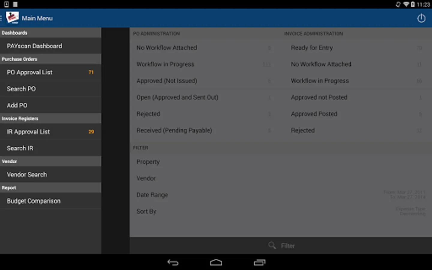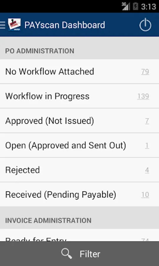 PAYscan Mobile adds mobile convenience to your PAYscan approval workflows. Quickly review and process purchase orders and invoice registers awaiting your approval with a few simple touches. Your company must be implemented to use PAYscan SP10 or later (SP12 required for version 3.0.0 features), and you must have an existing PAYscan account to use this app.
