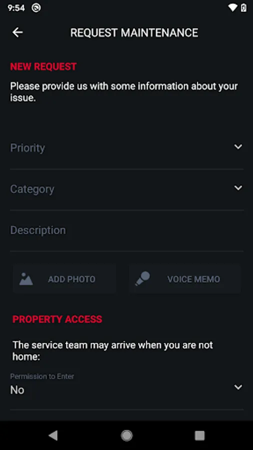 - Submit maintenance requests with detailed information such as photos and (or) a 2 minute voice memo of the issue