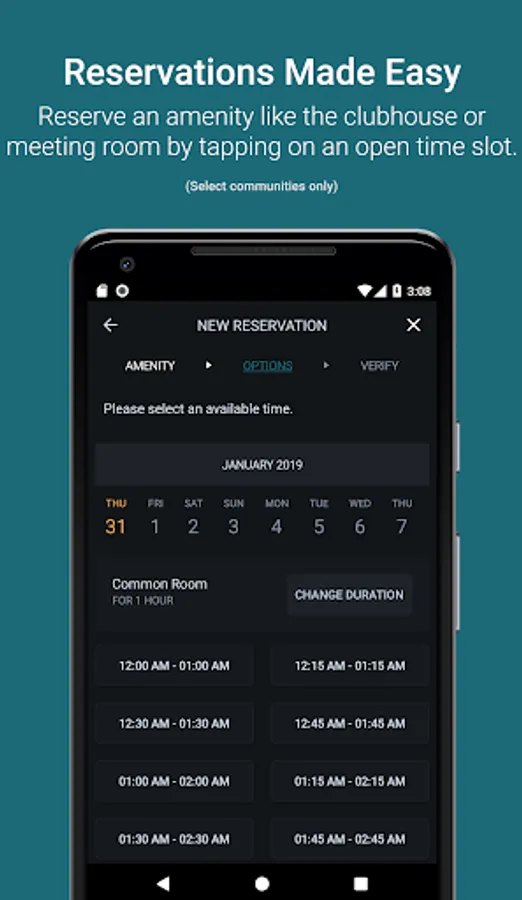 - Reserve community amenities such as the clubhouse, meeting rooms, and pool area with just a few taps.