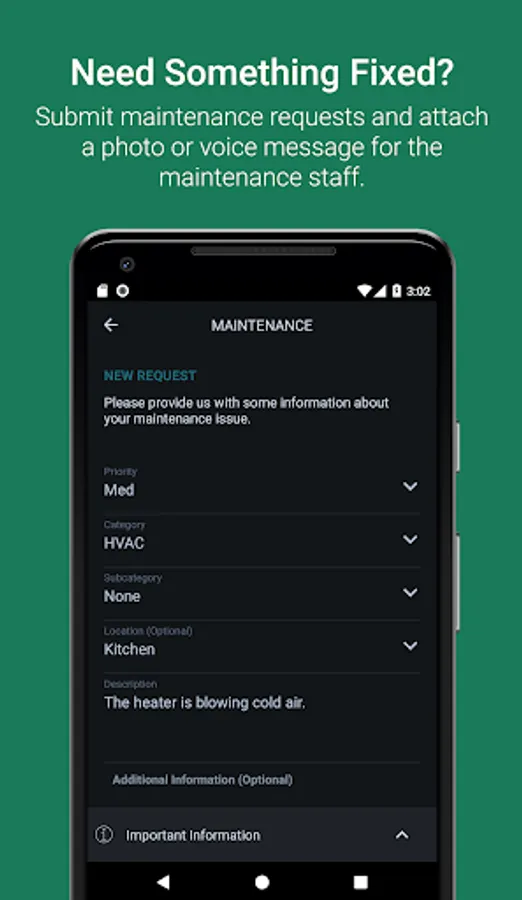 - Submit maintenance requests with photos and voice memos and track progress along the way.