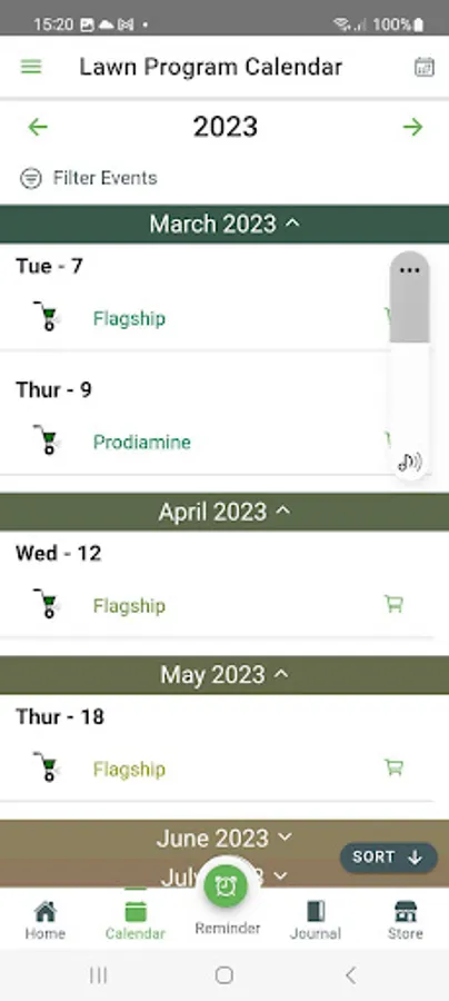 You also have the ability to set and see your upcoming reminders such as: time to sharpen your mower blades, take a progress picture or just about anything you can dream of.