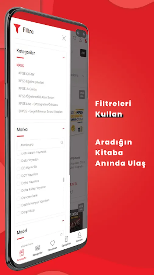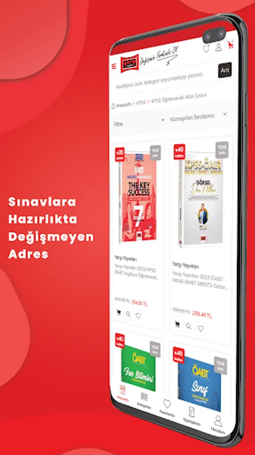 Through our application, you can easily buy the books of the pioneers of the exam books sector, such as Adalet Publishing House, My Teacher Publishing, Pegem Publishing, İsem Publishing, Doğru Preference Publishing, HocaWebde Publishing, Yediiklim Publishing and many more.