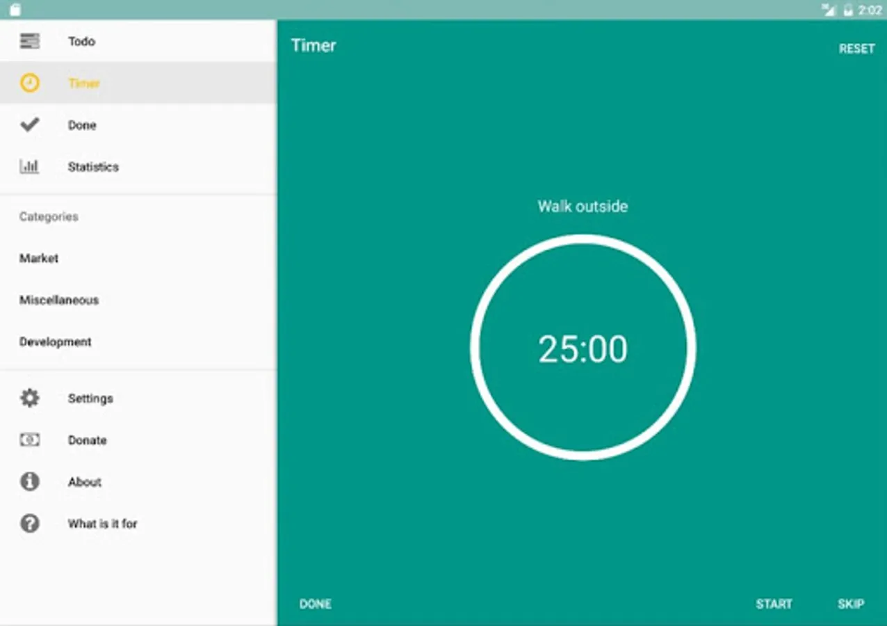 -Convenient action menu in notification: you can stop timer, restart it, skip current interval or mark current task done and proceed to the next one.