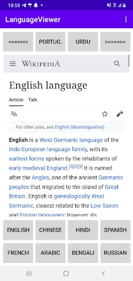Application for viewing information about languages, i. e.: