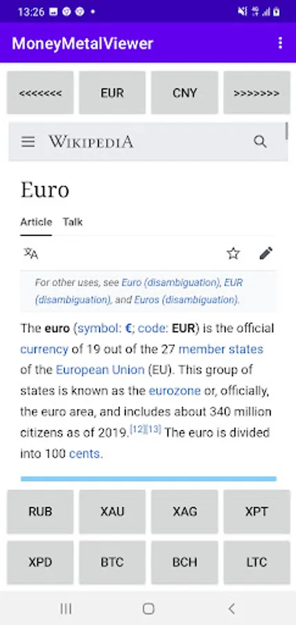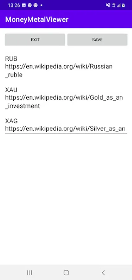 Application for viewing information about money and metal, i. e.: