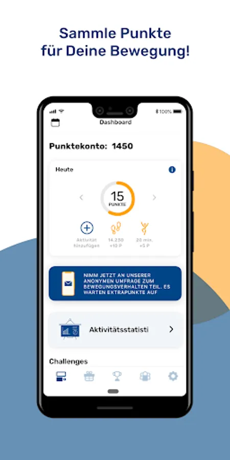 Motivating challenges: We challenge you to achieve a specific goal within a self-determinable period of time. If you master the challenges, extra points are always waiting for you as a bonus. In addition, there are always sporting rewards waiting to be redeemed!