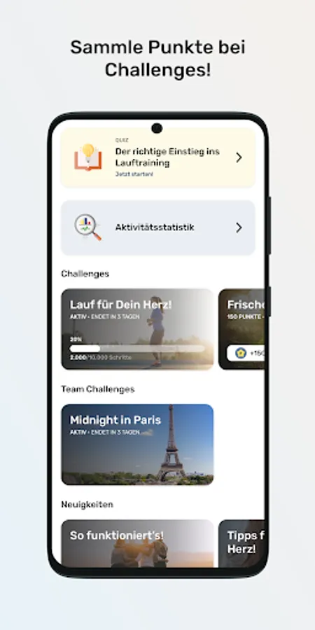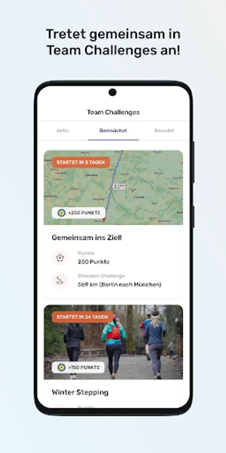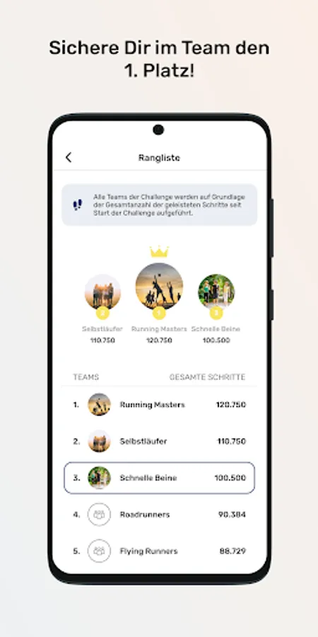 Team Challenges: Do you like competition and challenges in a team? Then we have just the right thing for you in this app. With the "Team Challenges" function, you and your team can achieve first place. Diligently collect steps together and reach the goal before everyone else. At the end, extra points and a lot of satisfaction about the mastered challenge await!