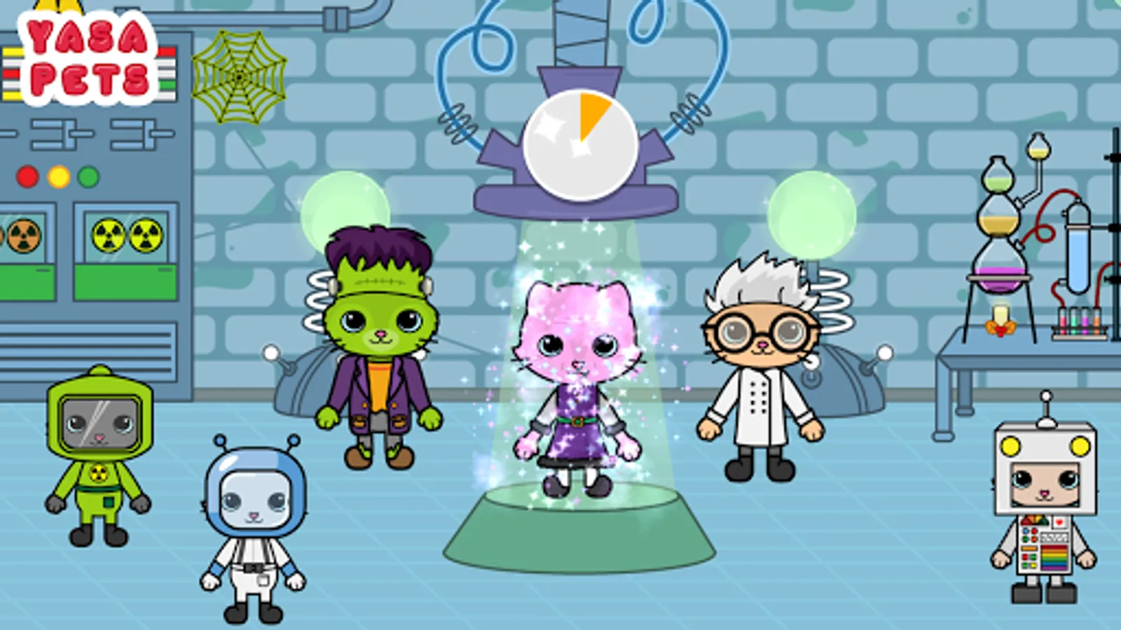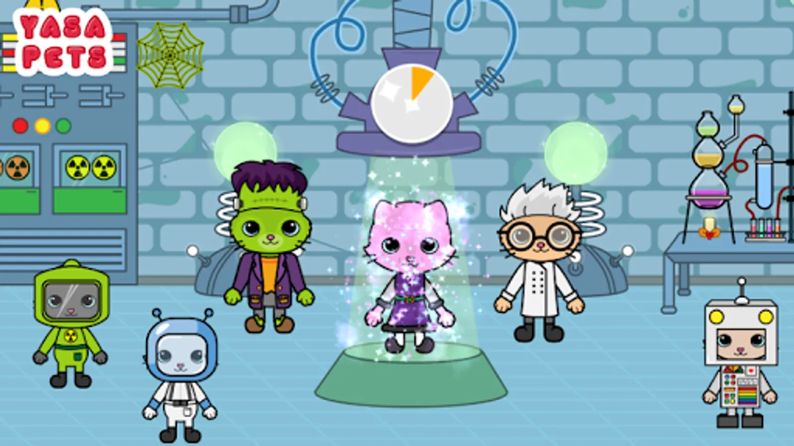 MAD SCIENTIST LABORATORY : Make sure to put on a protective costume before going into the laboratory of a mad scientist! Activate the magic laser beam! See the strange effect it has on kitties and bunnies! Don’t forget to have a safety shower before leaving the spooky lab!