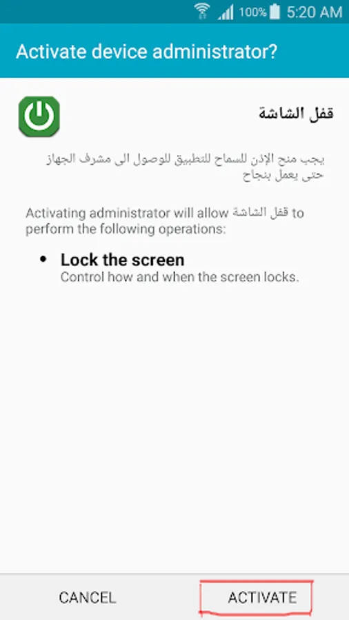 You must grant permission to allow the app to access your device administrator feature, which you can access by configuring your phone, then protection, then your device administrator, and then clicking and giving the application the option.
