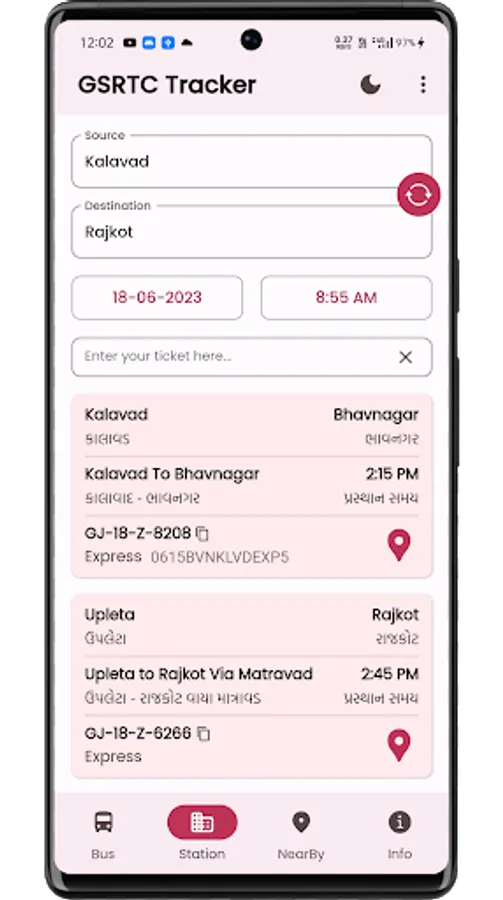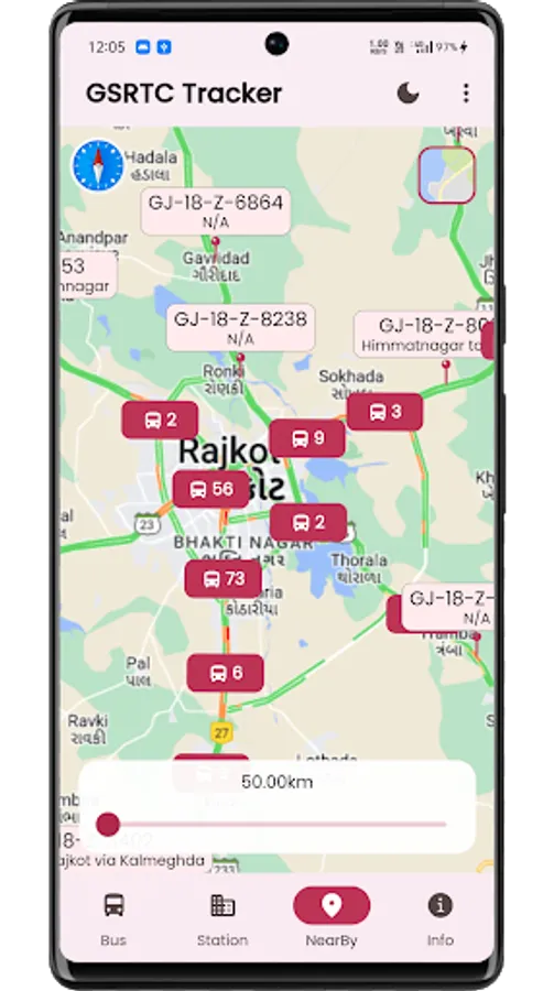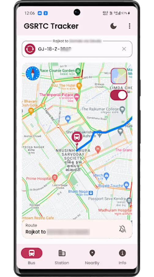 GSRTC Tracker provide convenient way to get live location of GSRTC (ST) Bus. Track your bus using bus number or Source-Destination. User can set the targeted location whenever bus reaches at the targeted location user get notification. Shows in notification progress bar for live tracking also provide some additional information like distance(km), estimated arrival time.
