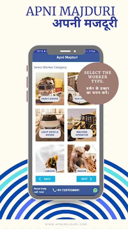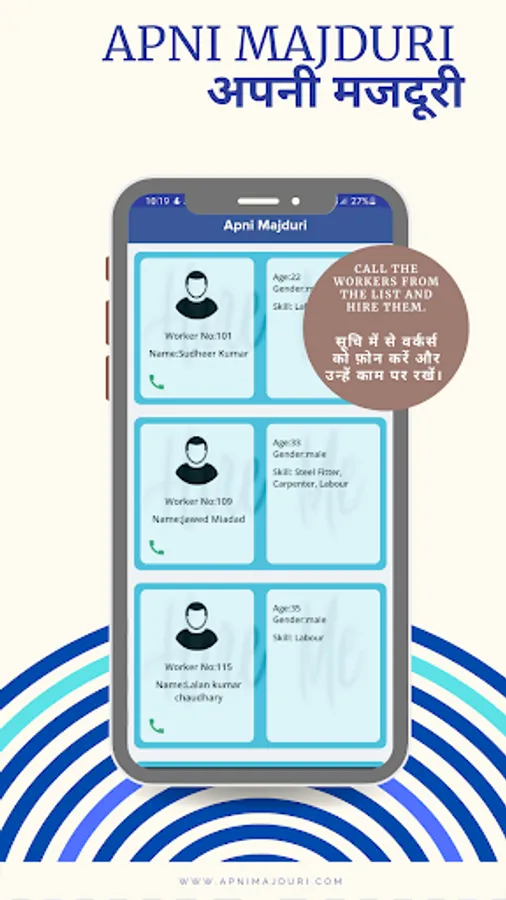 • All the applicants (Workers) contact number with matching skills will be shown on the Apni Majduri application.