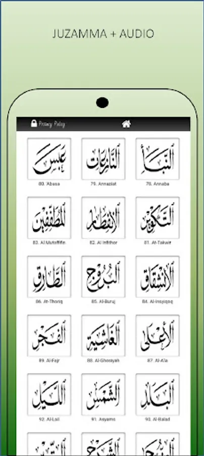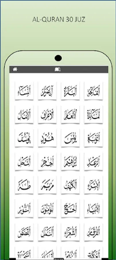 Displays Al-Quran 30 Juz Full Arabic text