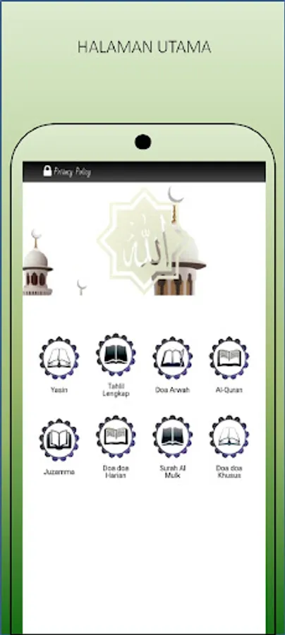 Displays Yasin and Tahlil letters with Arabic writing and translations