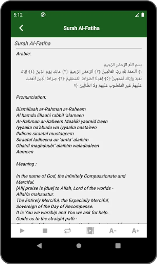 You can find Duaas and Surahs Pronunciations , Meanings, Sounds and videos.