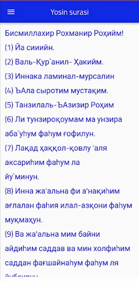 Sura "Yasin is sura 36 of our Koran, read and memorize. In this program you can memorize the Russian text. You can hear Qiroat sura-Yasin.