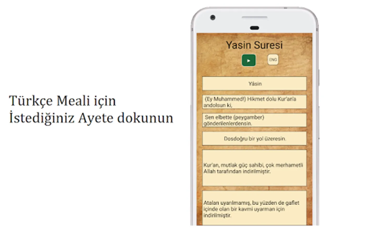 For Turkish translation, tap on the verse you want and read the Turkish translation.