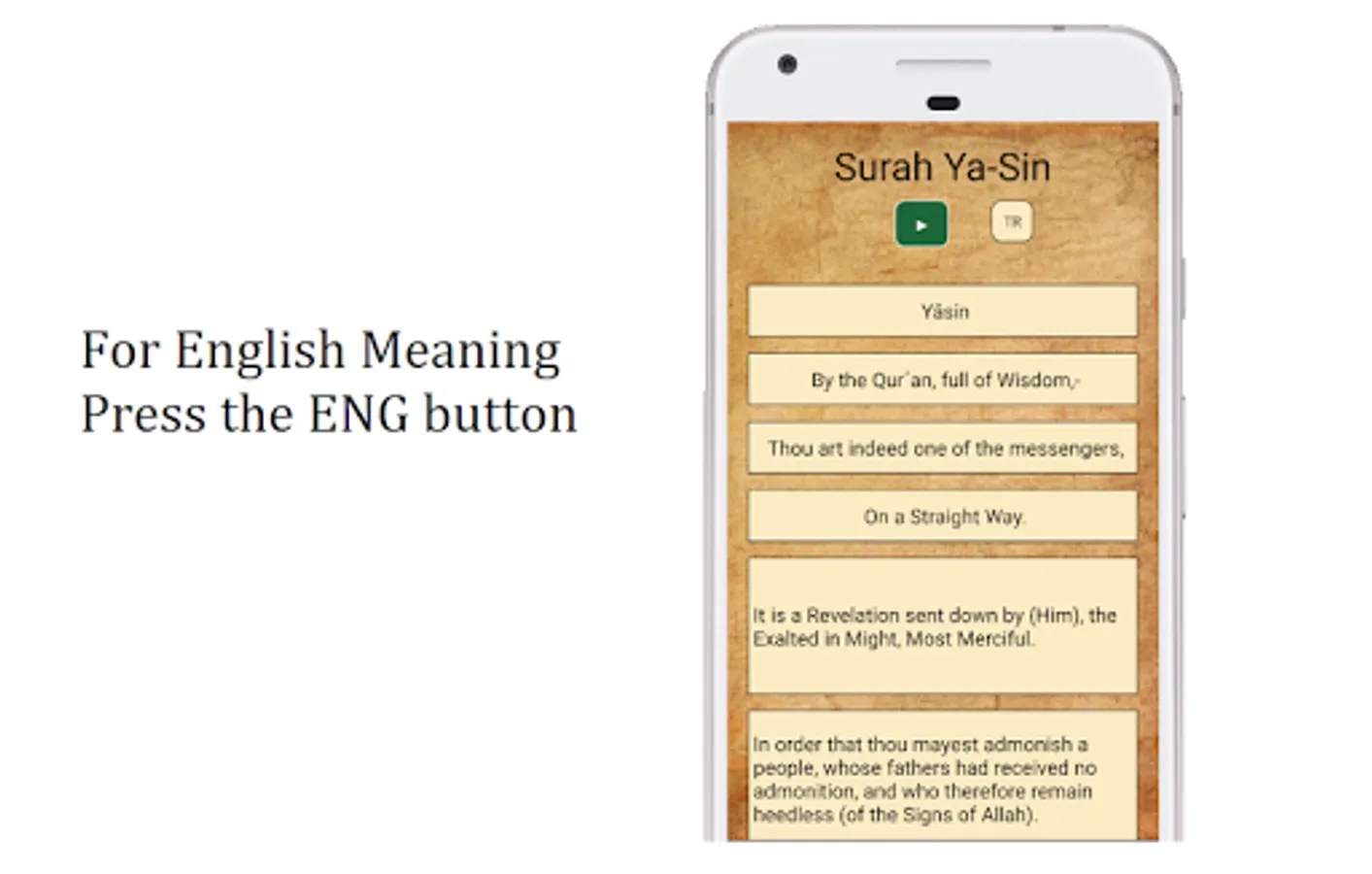 For English meaning, press the ENG button and tap on the verse you want.