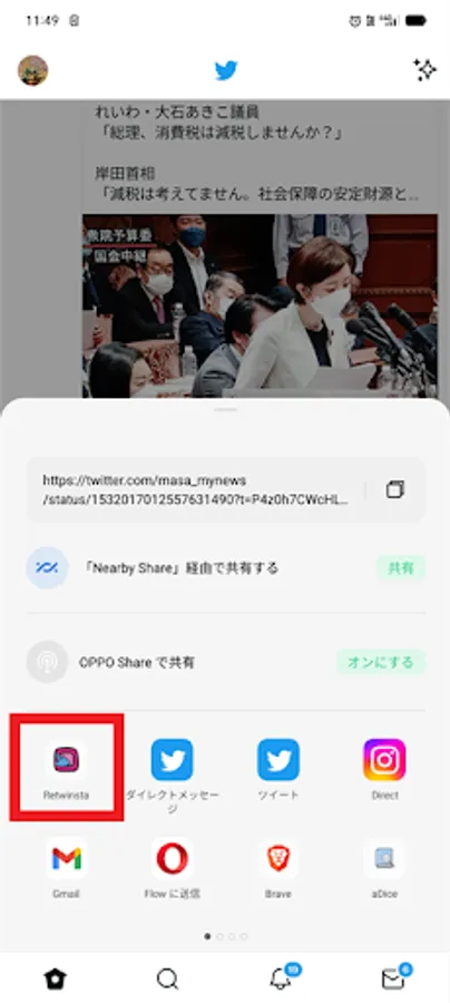 Select this app from the share menu at the bottom right of the Tweet on the official app.