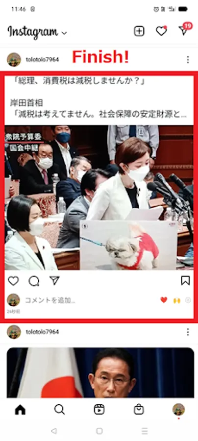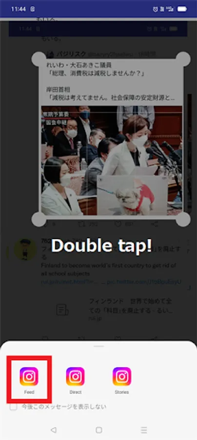 It will take a screenshot (and trim it) then transfer it to Insta.