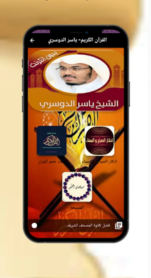 After installing the application of the Noble Qur’an with the voice of Yasser Al-Dosari for free, you can listen to the surahs of the Noble Qur’an anytime and anywhere with ease.