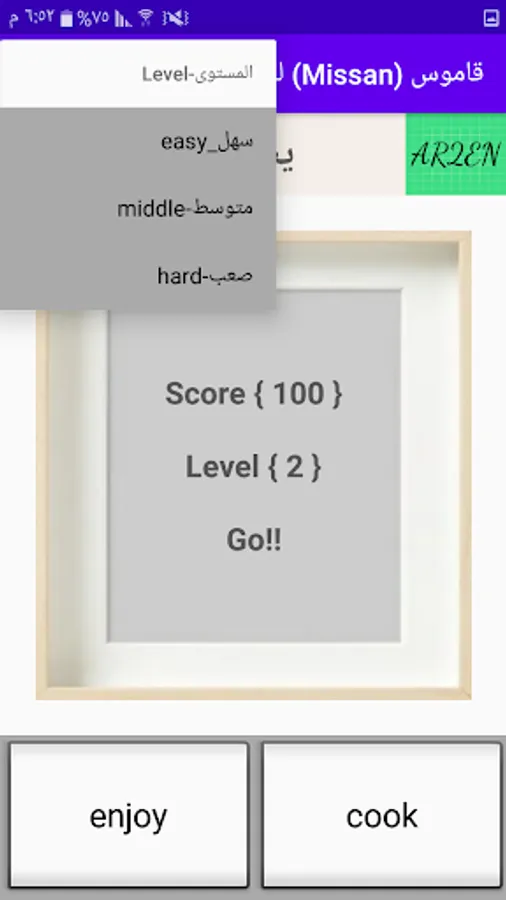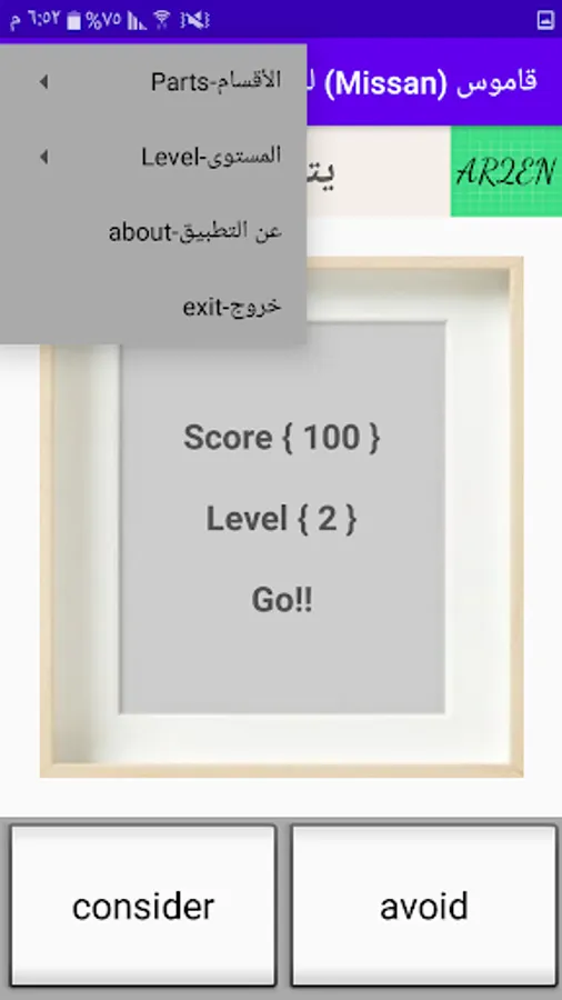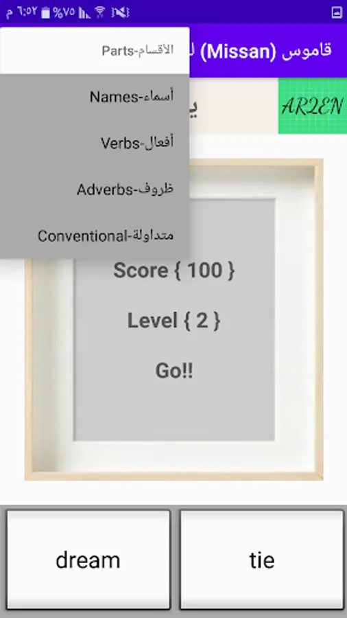 A simple and comfortable interface to look at and a list that has many options, the classification of words in it came according to names, verbs and suffixes, and there are graded levels of difficulty to include different categories of users, with the addition of a section for common phrases for those who want to learn the extent of the case in travel or others.