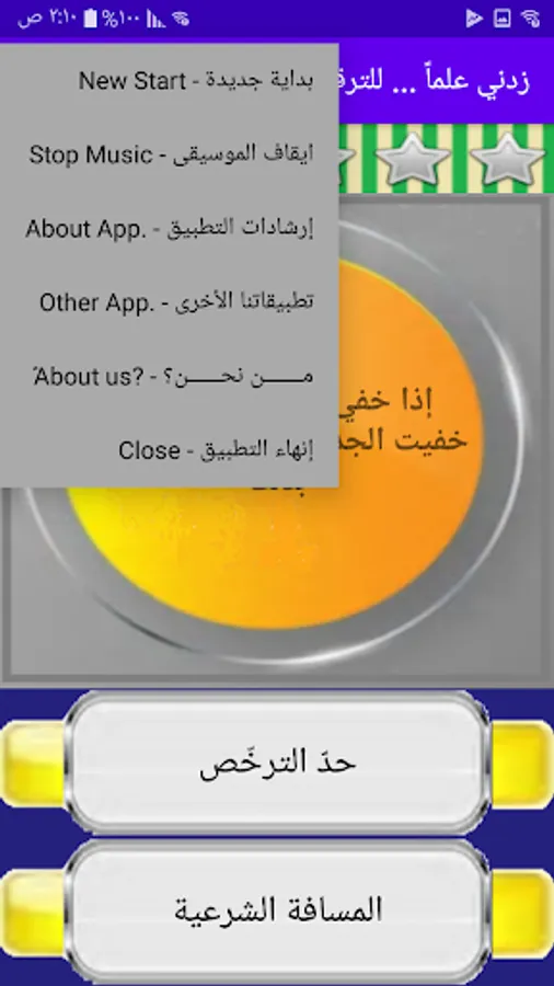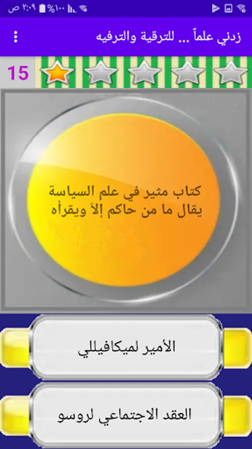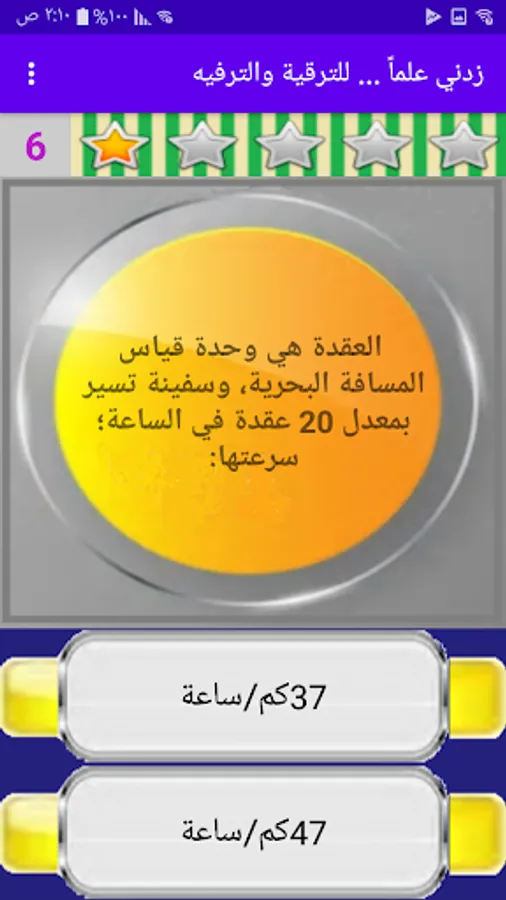 When you answer fifteen questions, not exceeding the number of errors allowed for each stage, you will get a star and rise to the next stage, which is five stages, meaning that you will answer in total (75) questions.