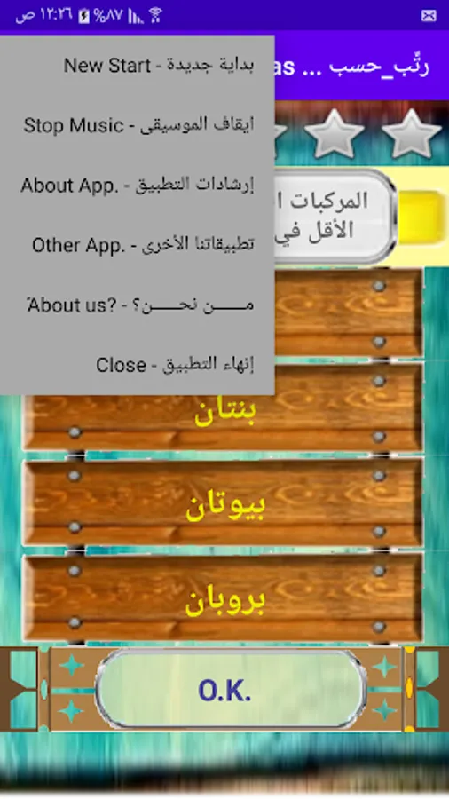 - A light and easy-to-use application that aims to enrich the user's knowledge outcome by transmitting information in an interesting and enjoyable manner, and in which the correct arrangement of a set of scientific facts or concepts is required.