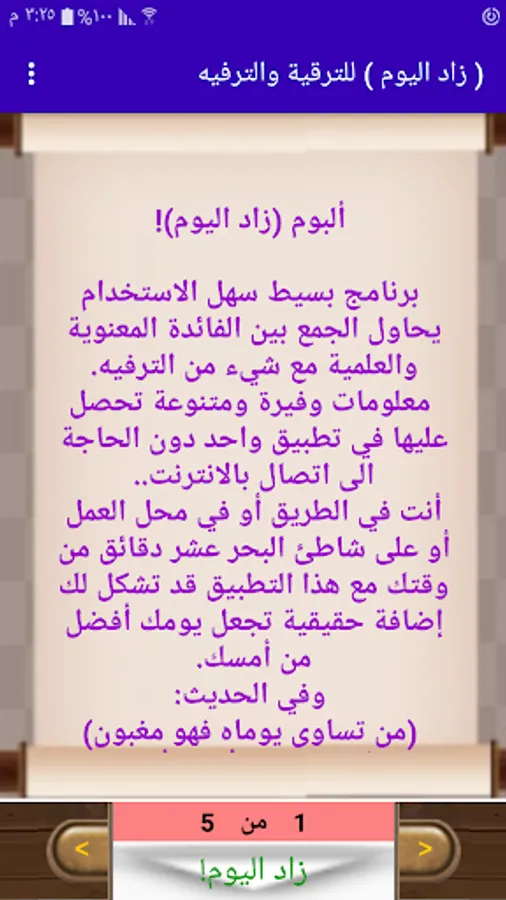 - (Zad Today) is a lightweight application that is easy to use and rich in educational, educational and entertainment topics, so that it can be considered a mobile library that you take with you wherever you are at home, at the workplace, on the road or on the beachfront, without worrying about the internet connection or Wi-Fi service.