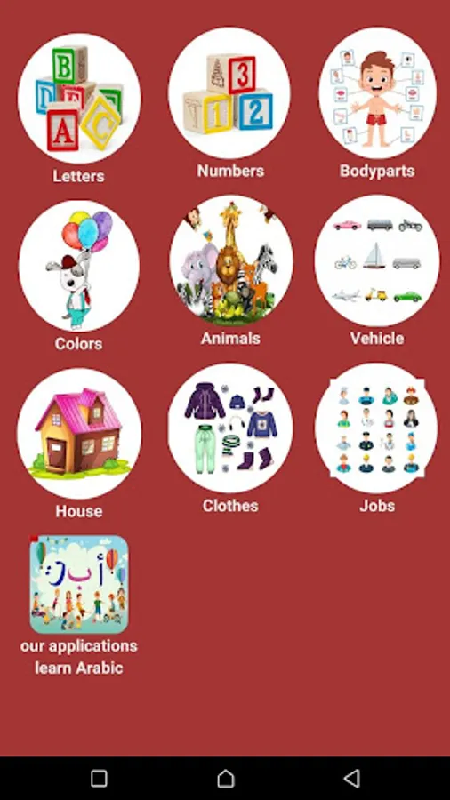 English for children with sound and image, as well as teaching Arabic alphabets without the Internet
