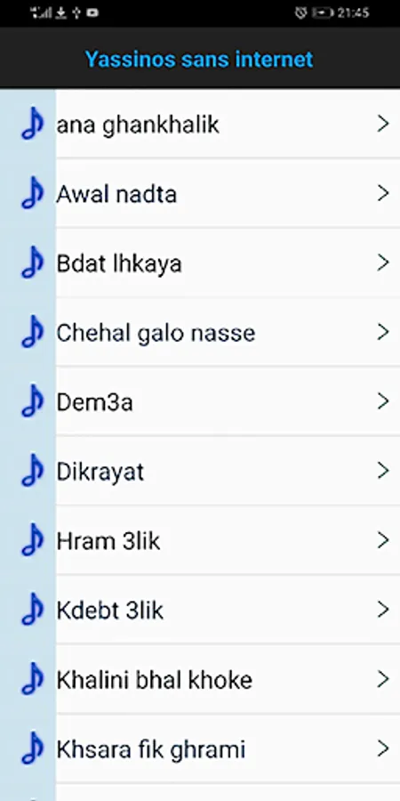 Features Easy to use small application works without Internet New design updatable musique sans internet