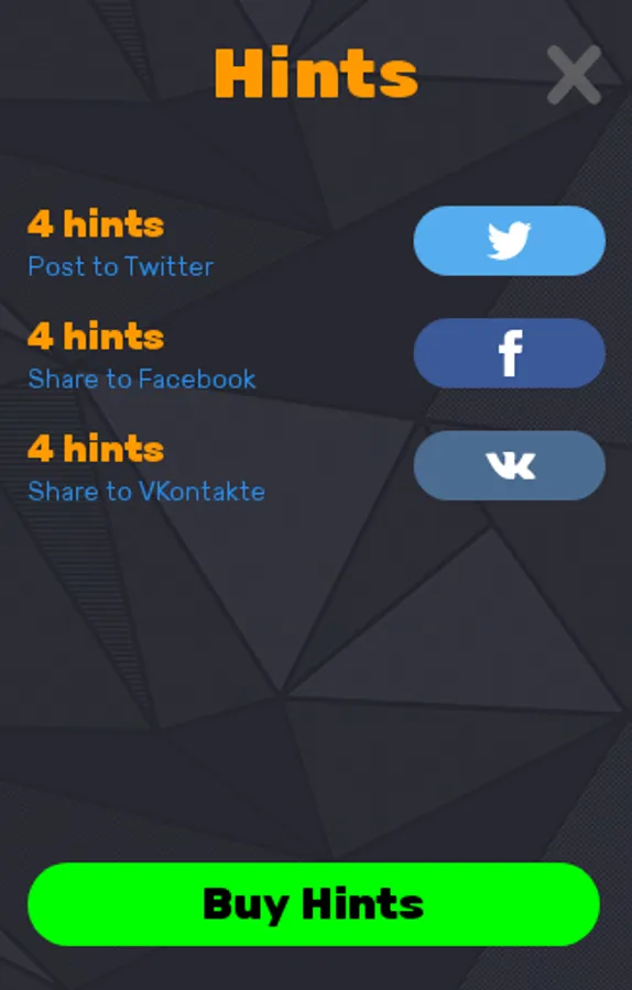 also these hints you can get from sharing the app through social media accounts, watching a video or even buying new hints with a little money.