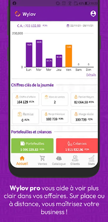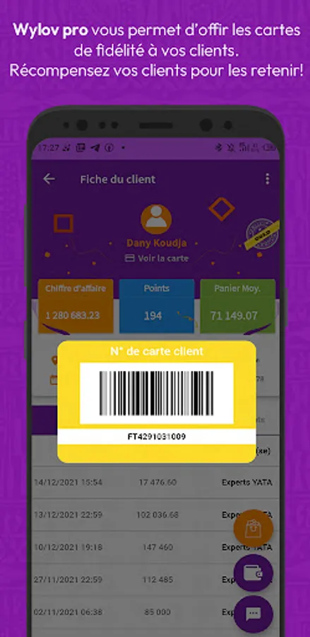 Wylov pro is a mobile platform dedicated to the management of the commercial activities of products and / or services. Wylov pro offers the following modules: multi-cash point of sale, customer loyalty management, a CRM for customer relationship monitoring and access to the Wylov customer market place.