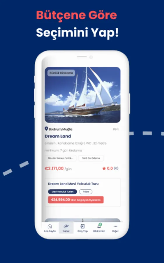 Yachting application brings a new breath to yacht charter and reservation systems. You can enjoy the type of boat you want by searching various locations and different types of cruise options. You can also benefit from special offers.