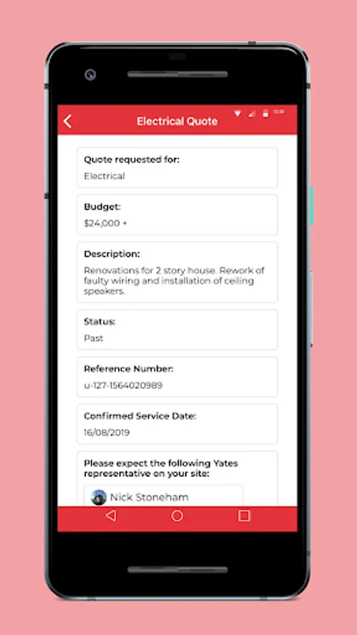 Your service quote will display your confirmed service date along with which representative from Yates Electrical Services you should expect on your site. Once the callout is completed, we will attach an invoice to your service quote so you can later refer to it.
