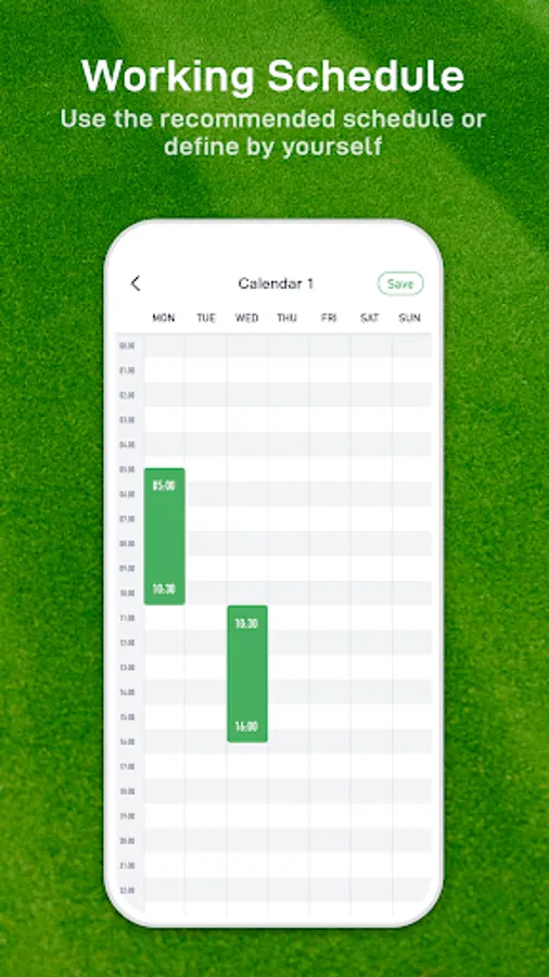【Intelligent Scheduling】Customize your needs and set the work schedule of the equipment. You can choose a specific period of time every day, week or month, without manual control, so that the equipment automatically carry out work to complete garden maintenance.