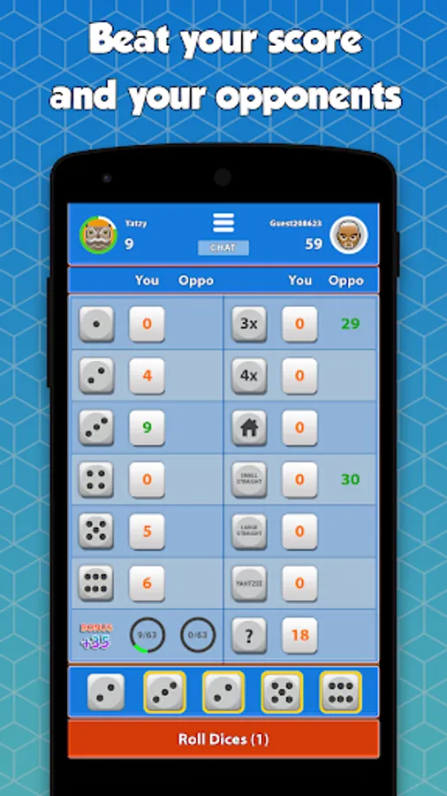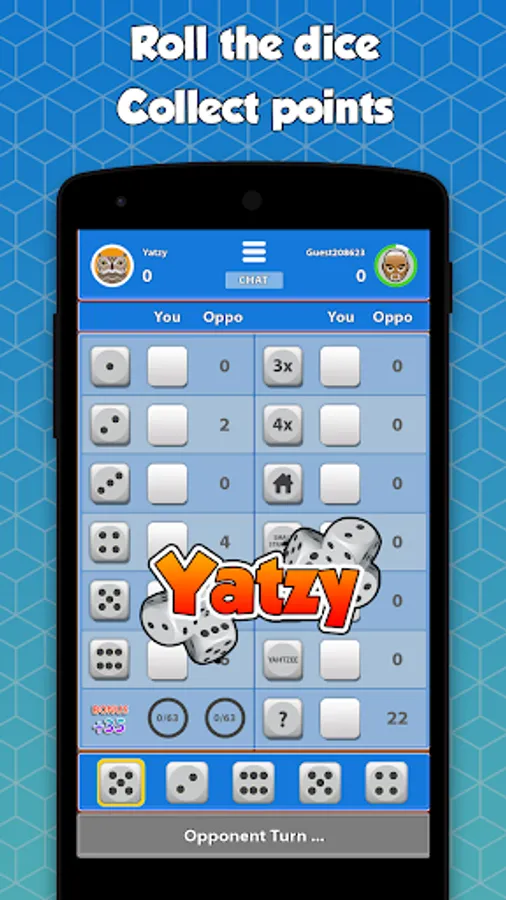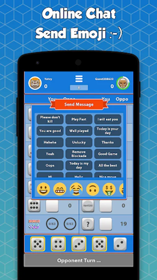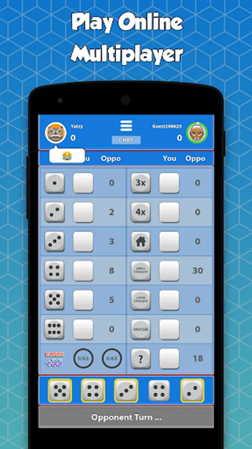 You can have it on your phone and play Yacht with other players. You can chat with your opponent in multiplayer online room. Send emoji and funny images to them. Yatzy Star will get you to the new awesome dice game.