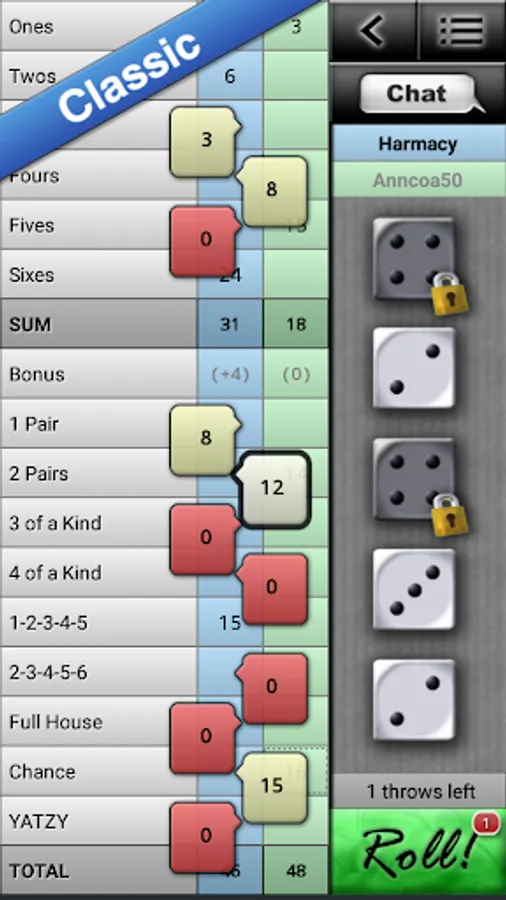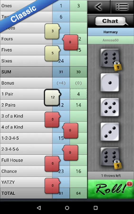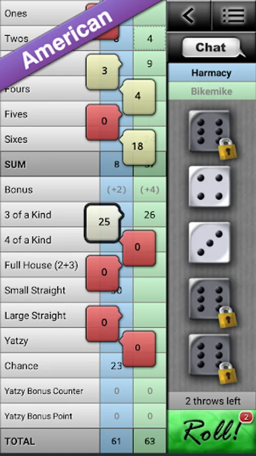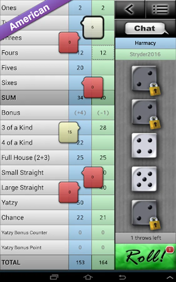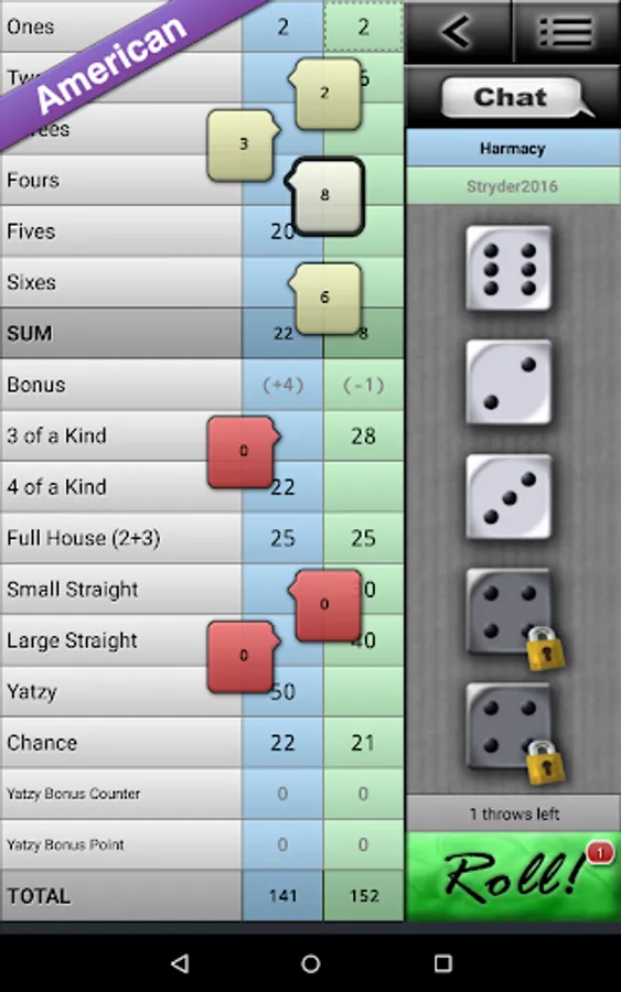 - 3 game modes: Classic, Maxi and American Yatzy.