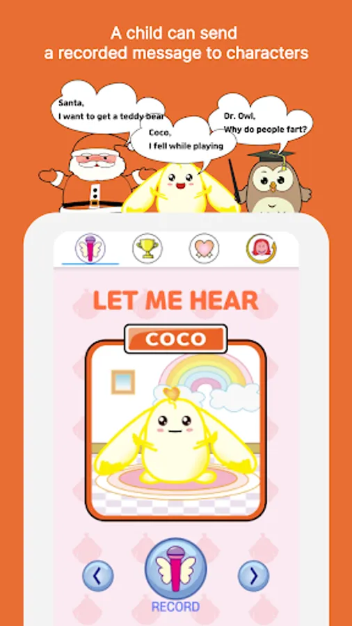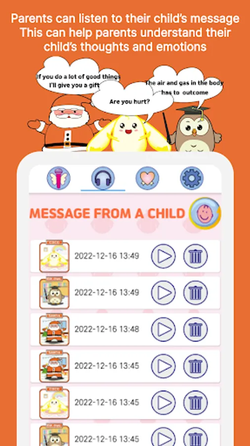 2. Parents can listen to their child’s message and send a message back to the child through the characters.