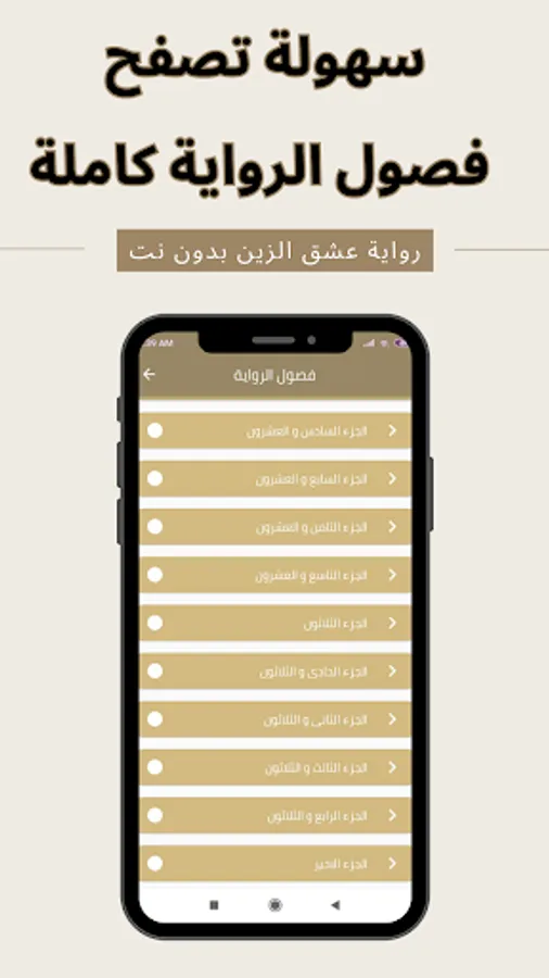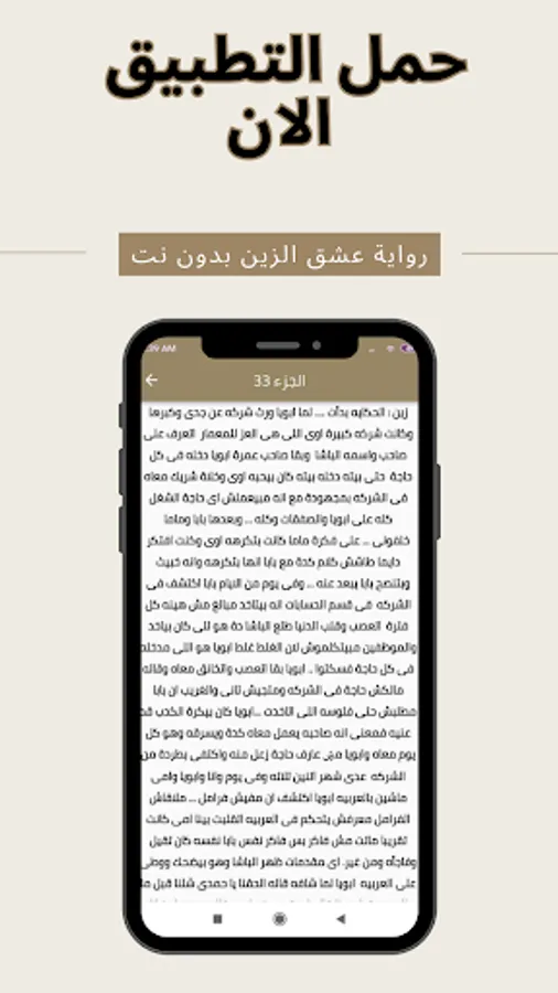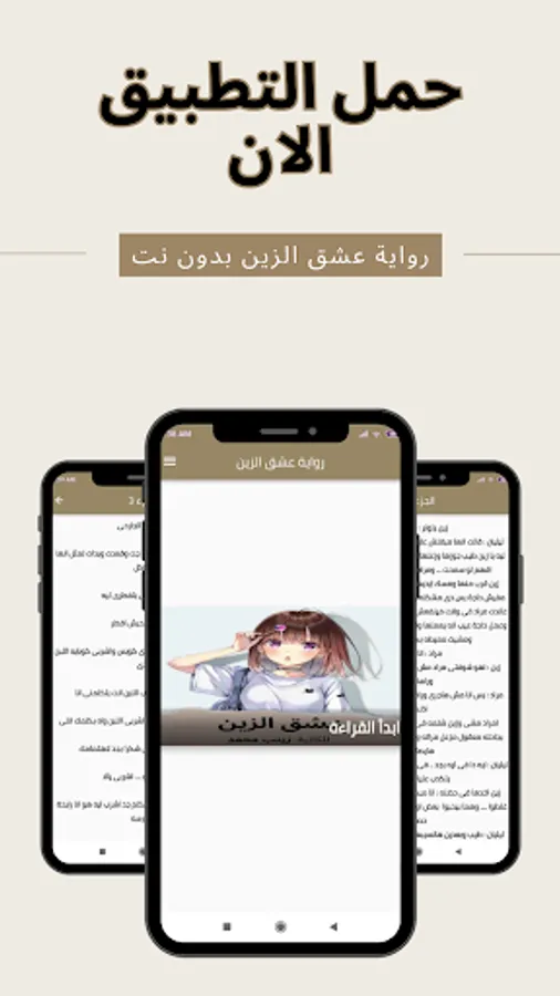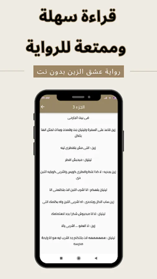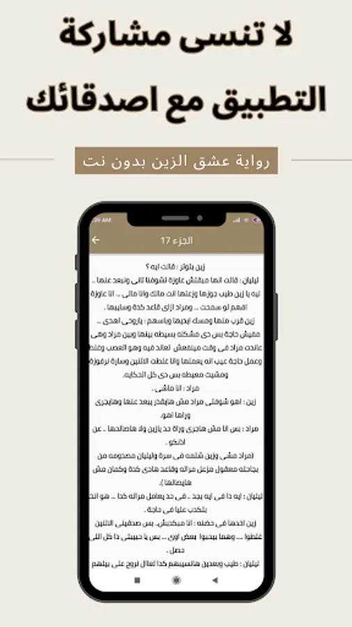 The application of the novel Love of Zein without the net is characterized by ease of use, division of chapters in order and direct reading, in addition to the feature of sharing the application with friends with ease.