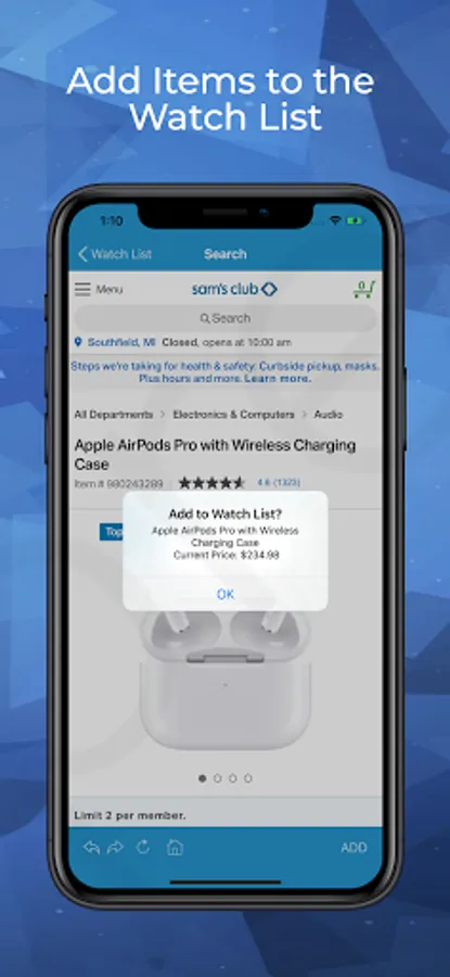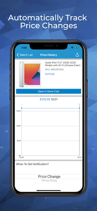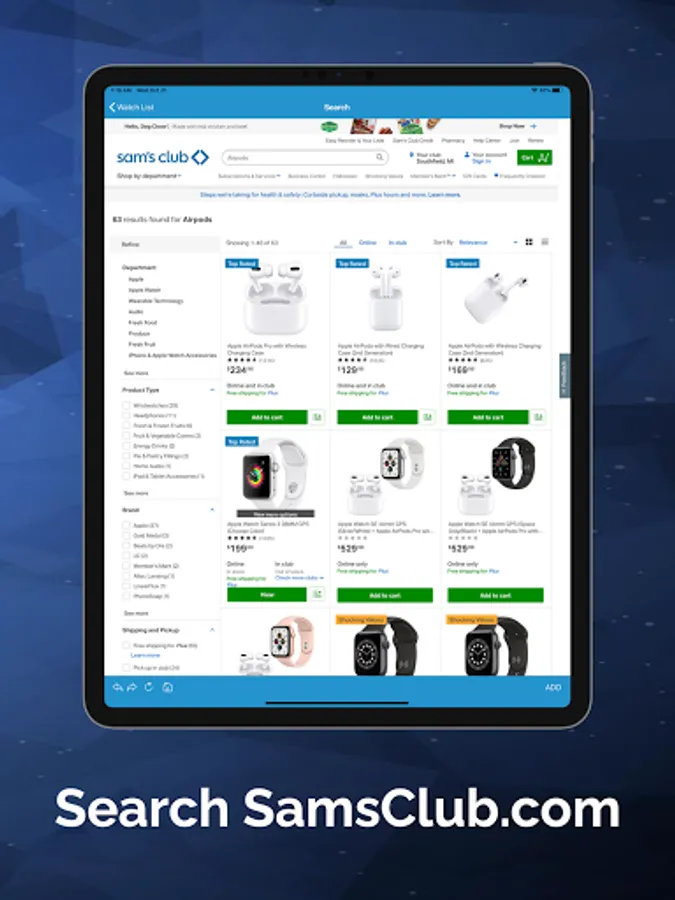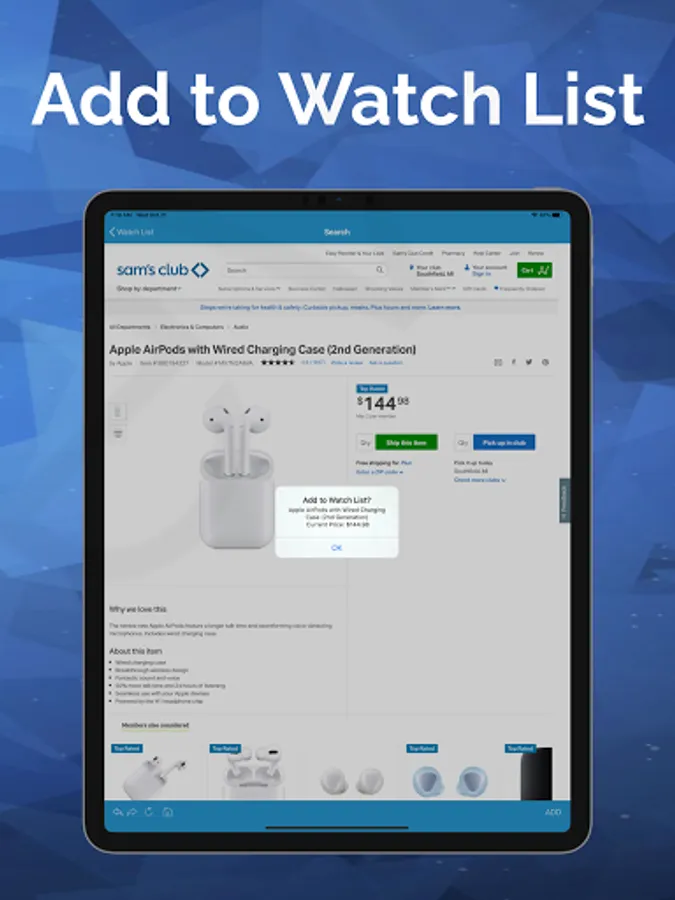 Add products from SamsClub.com to the watch list and track their prices. You will get notified when the price drops to the price you select.