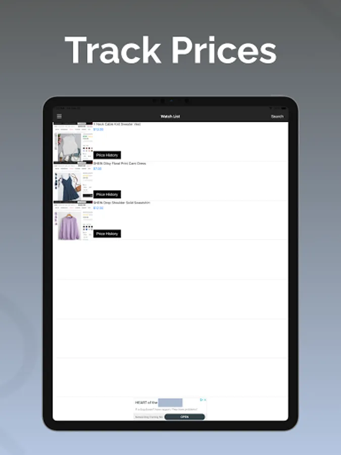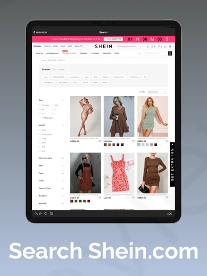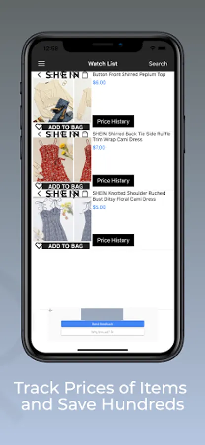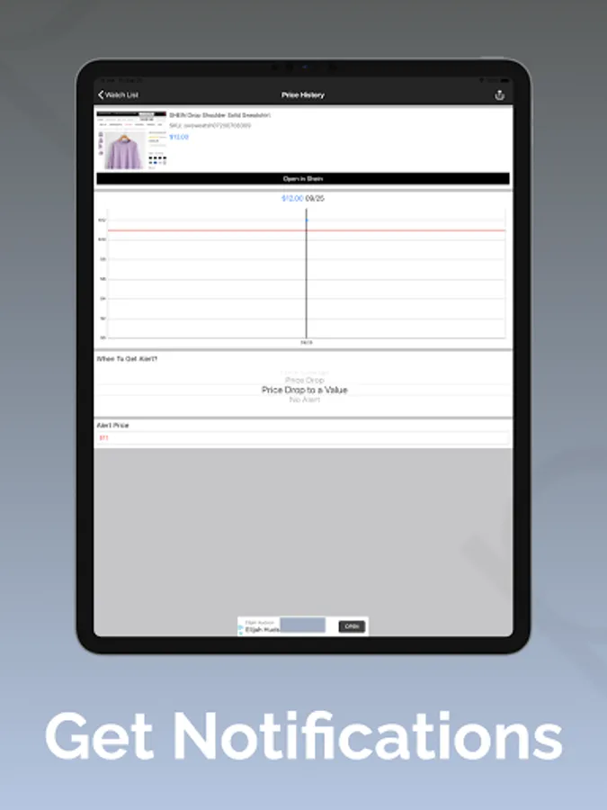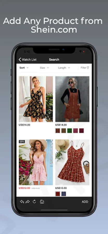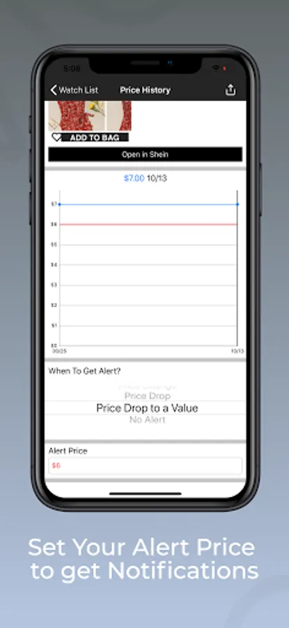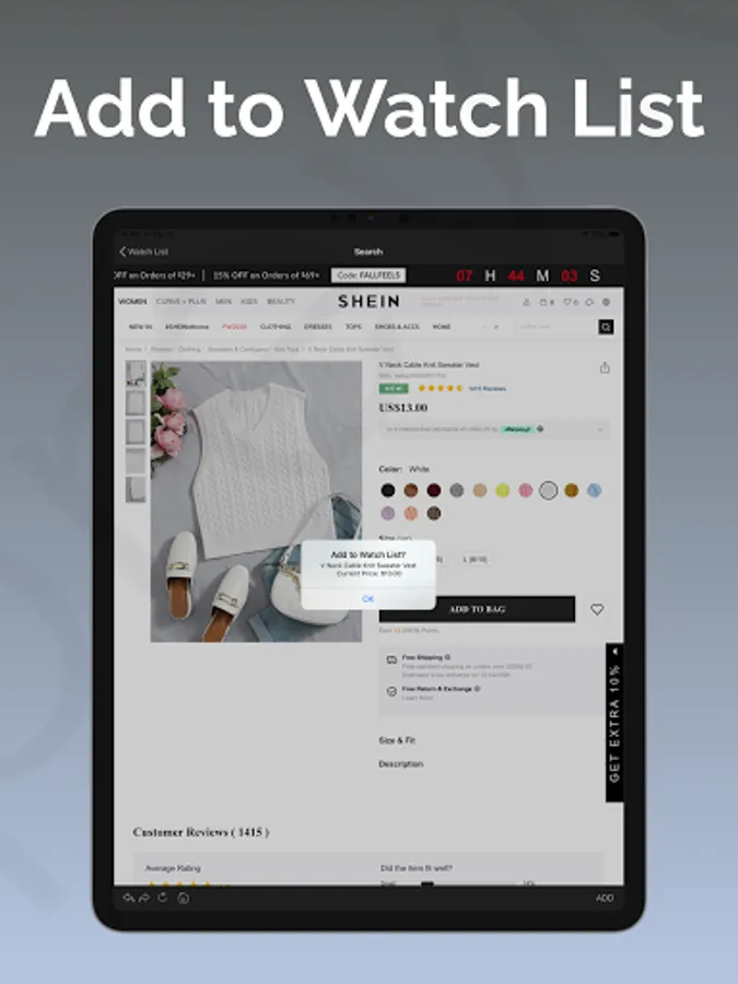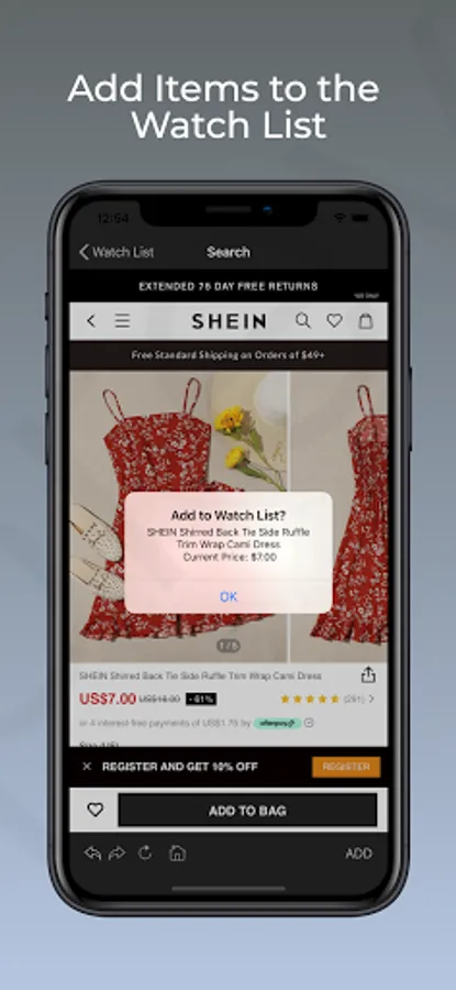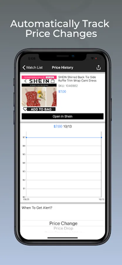 Add products from Shein.com to the watch list and track their prices. You will get notified when the price drops to the price you select.