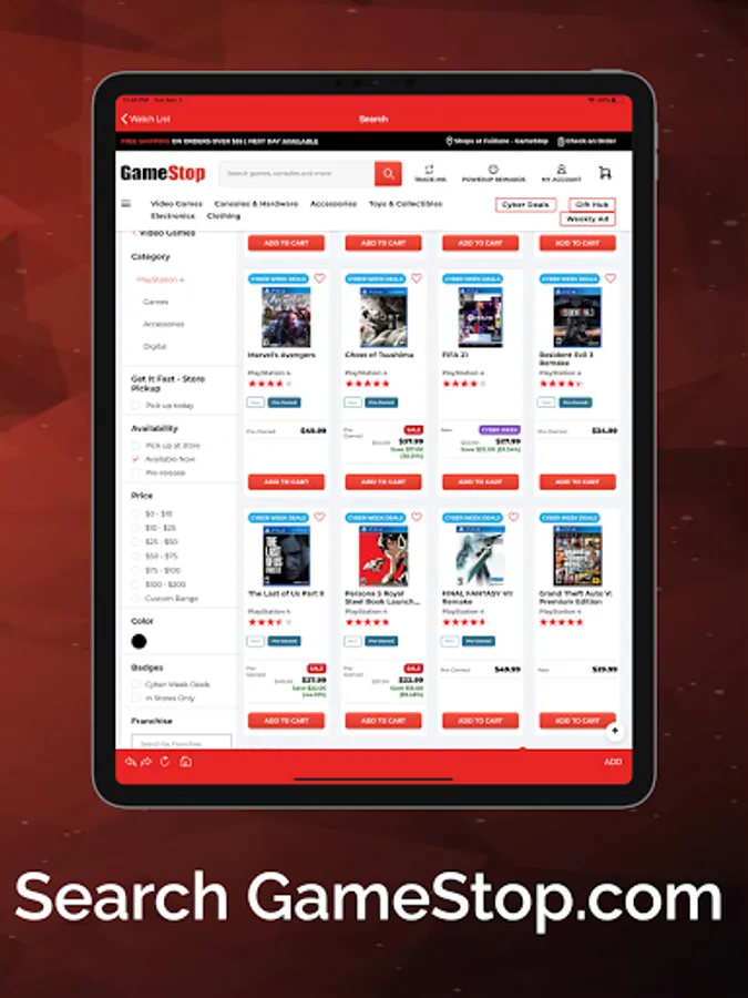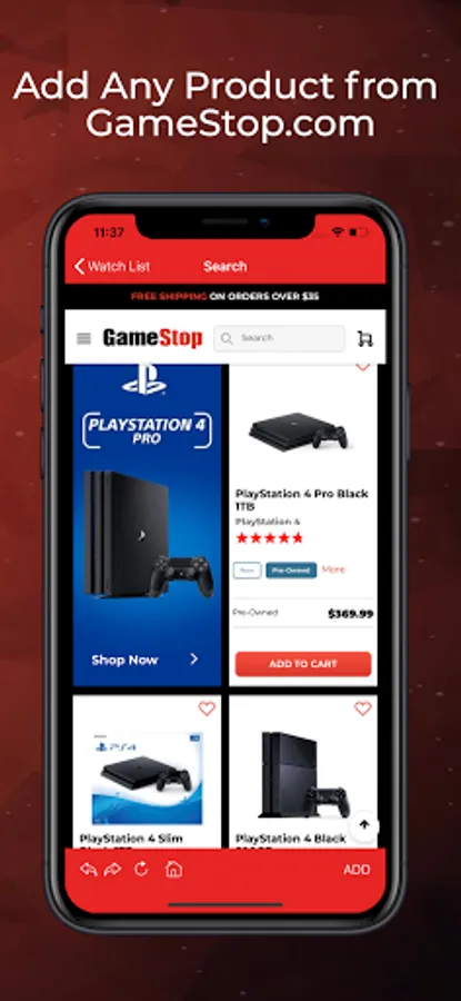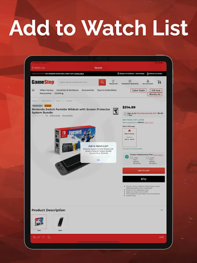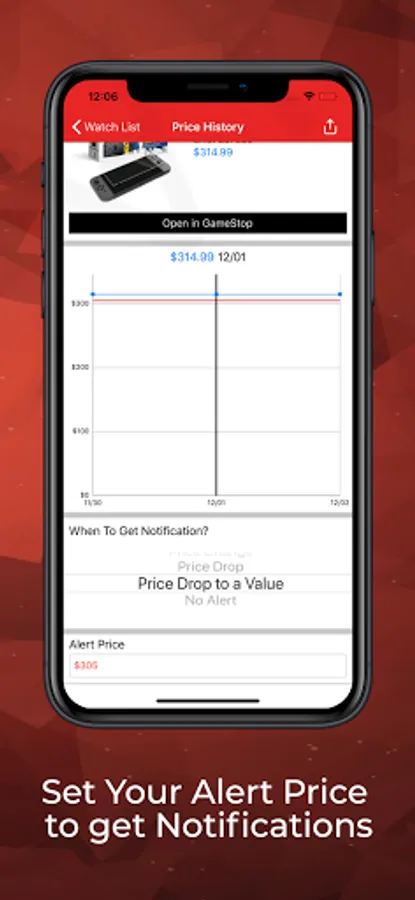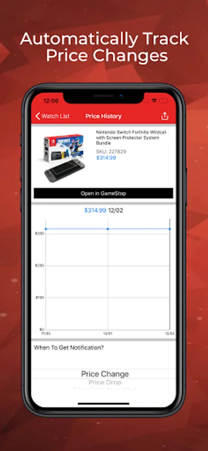 Add products from GameStop.com to the watch list and track their prices. You will get notified when the price drops below the price you select.