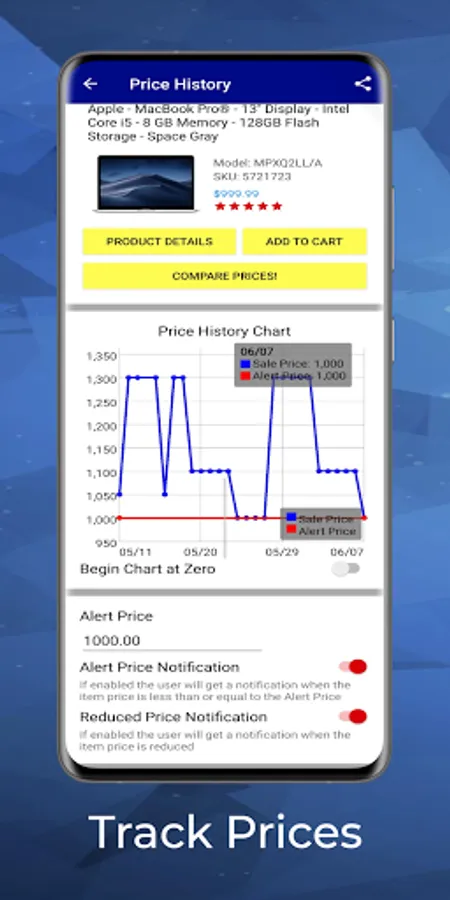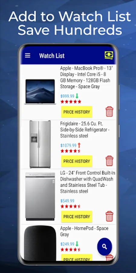 Add products from Best Buy to the watch list and track their prices. You will get notified when the price drops below the price you select. Products that are added to watch list are tracked daily and can be viewed in the Price History Chart.